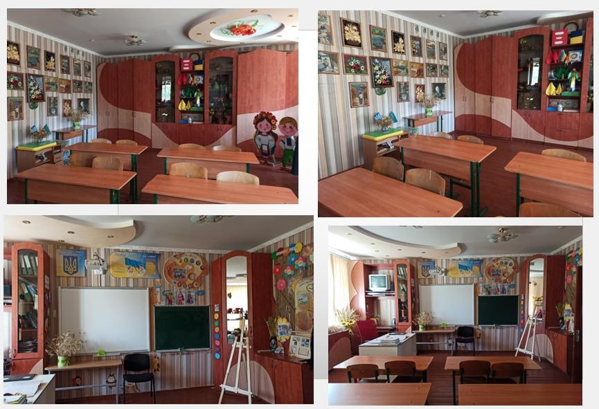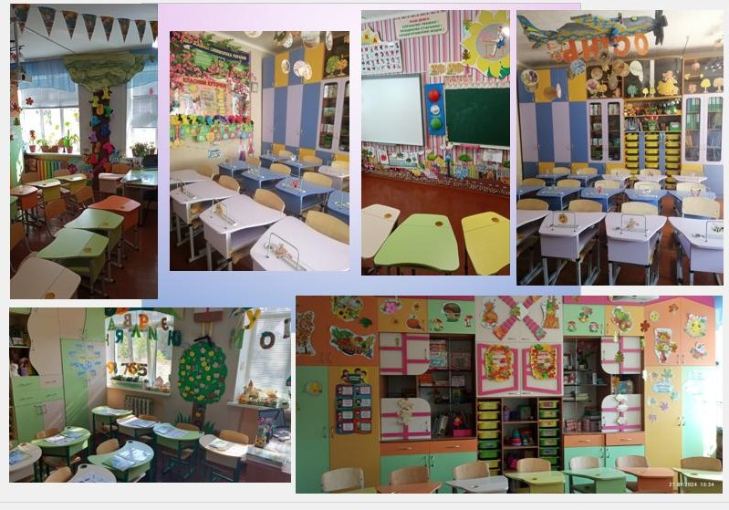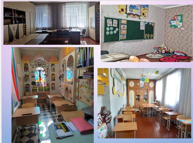Кожен навчальний кабінет укомплектований модульними партами, стільцями для кожного учня; столами і стільцями для обладнання кожного робочого місця педагогічного працівника; інтерактивними дошками, телевізорами, проекторами, ноутбуками (хромбуками, комп’ютерами), зручними шкільними меблями адаптованими до зросту дітей; класними дошками, мультибордами.