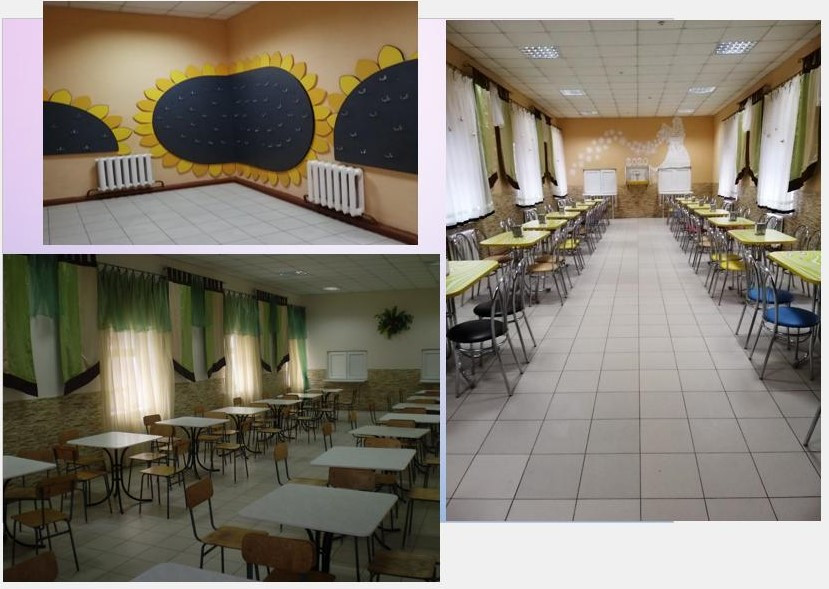 Шкільна їдальня розташована в окремому приміщенні, що має площу 224м2. Приготування страв здійснюється кваліфікованими кухарями за меню, яке розроблене сестрою медичною з дієтичного харчування та погоджене керівником Головного управління Держпродспоживслужби в Миколаївській області.