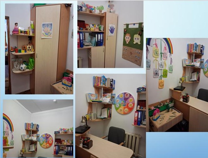 Навчальний заклад має кабінети для проведення логопедичних занять, кабінет психолога та соціального педагога.