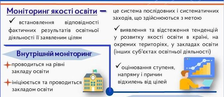 Моніторинг якості освіти та освітньої діяльності - найбільш дієвий, стимулюючий фактор розвитку нашого навчального закладу, його осучаснення. Постійний, цільовий контроль і діагностика всіх напрямків освітньої діяльності забезпечують створення в школі комфортних умов для корекційного навчання, виховання дітей з особливими освітніми потребами.